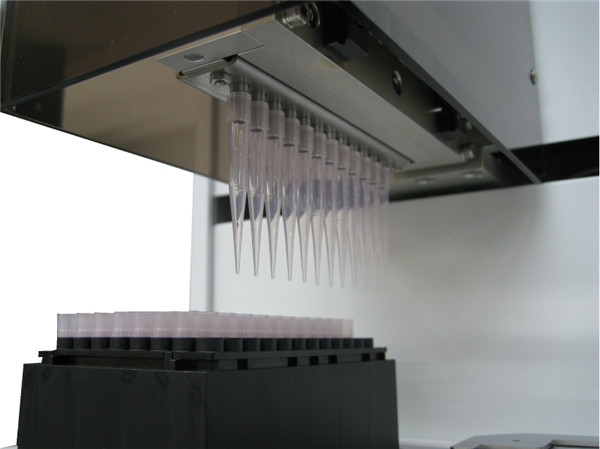 最左側(cè)位為吸頭盒專用。豎向放置可用于12或24通道,橫向放置可用于8或16通道。吸頭的插入和取出由儀器自動(dòng)完成的。除標(biāo)準(zhǔn)吸頭外,我們還提供無菌吸頭,帶過濾芯的無菌吸頭,涂有硅酮的吸頭等。
