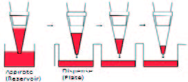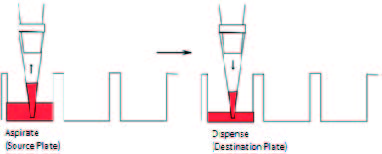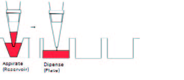 ①DISPENSE分液:從試劑儲(chǔ)液槽到微孔板一對(duì)一分液