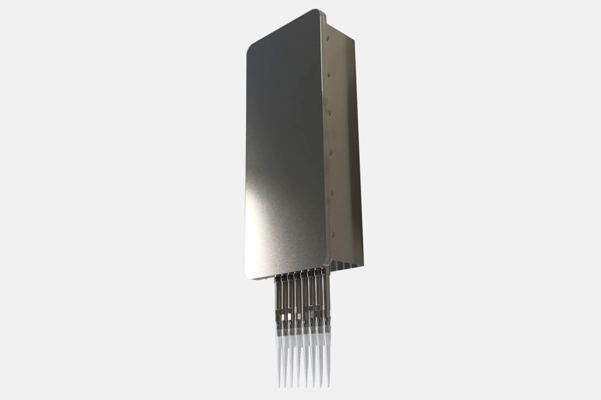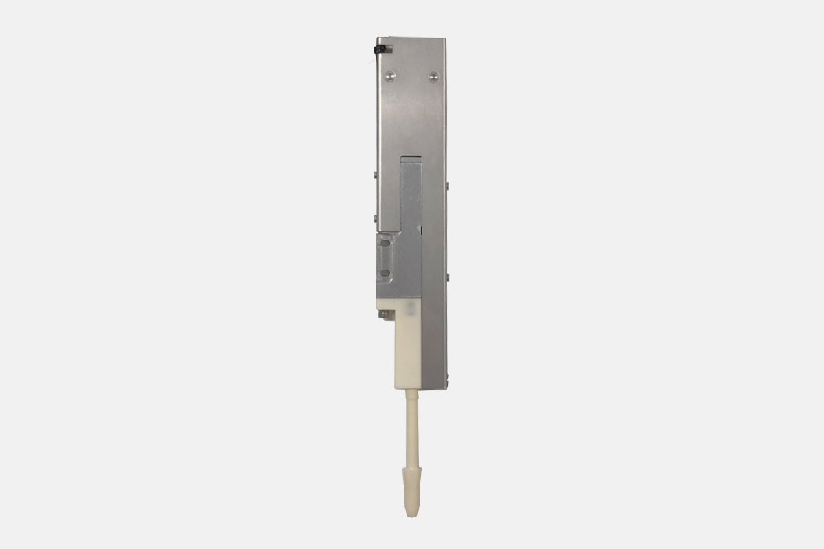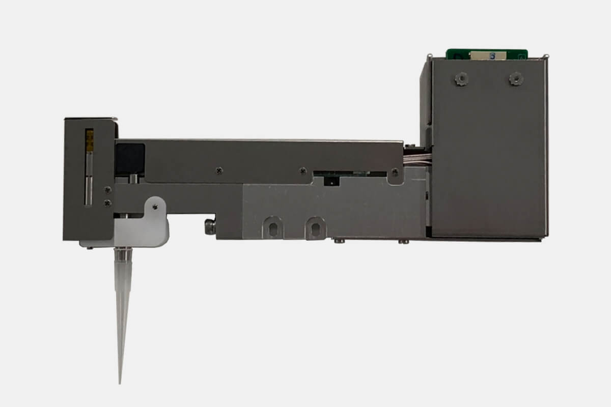 為了響應客戶的要求,將其安裝在小型,薄型設備上,我們制造了一個單元,通過定制吸頭嘴的位置和方向,將主體更改為水平長的形狀。 通過定制單元的形狀,自動移液部件可以支持各種設備布局,同時保持高精度的移液能力。 除了自定義形狀外,還可以安裝各種其他功能(液位檢測,吸頭彈出)。