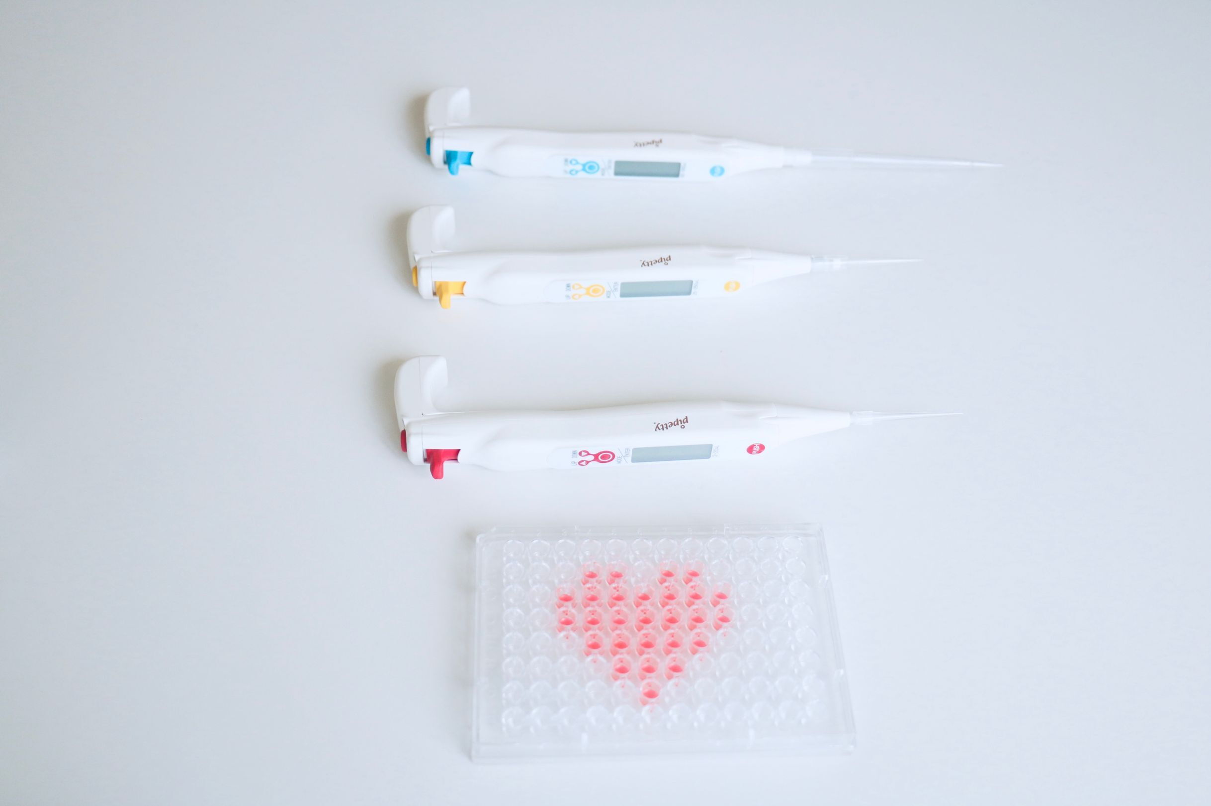 另外,移液器還存在作業人員的體溫會導致移液器內部溫度上升的“手部加溫”問題。作業人員的手部溫度會讓移液器內部的溫度升高5°C,分注的液體體積就會減少1.8%,分注精度也會降低。注意到了這個問題的片野,在pipetty中裝入了全世界首次檢測到移液器內部溫度并控制升溫的系統,并進行了產品化。