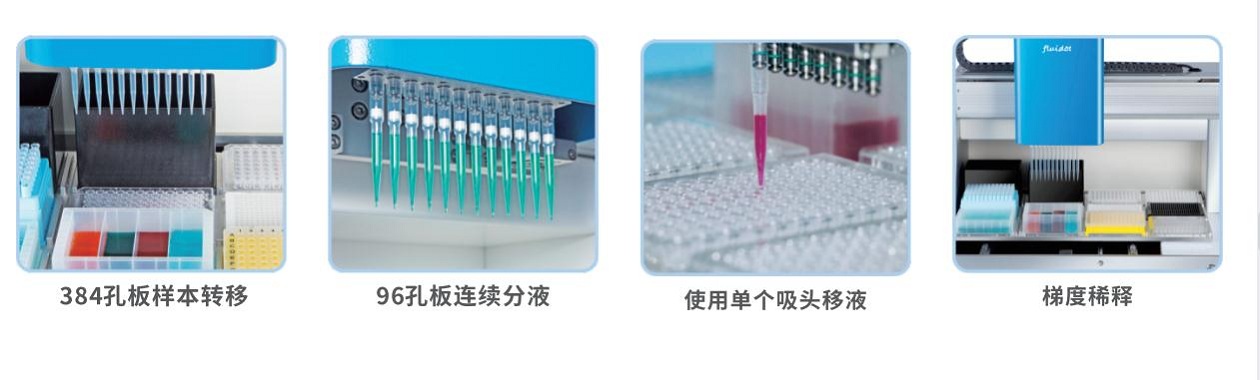 fluidot 12道多功能移液工作站(十二板位) 主要功能 :能快速自動完成樣本稀釋、微量核酸樣本的轉(zhuǎn)移、試劑分裝、混勻等,應(yīng)用前景十分廣闊!