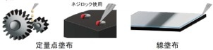 對于粘性液體可以微量吐出。通過精密儀器組裝中的粘合劑或硅油的微量噴出,提高質(zhì)量,從而降低了成本。液劑的噴出是填充到注射器中噴出。另外,注射器采用拉桿鎖定形狀,安裝的噴嘴對應(yīng)于各制造商的通用噴嘴。