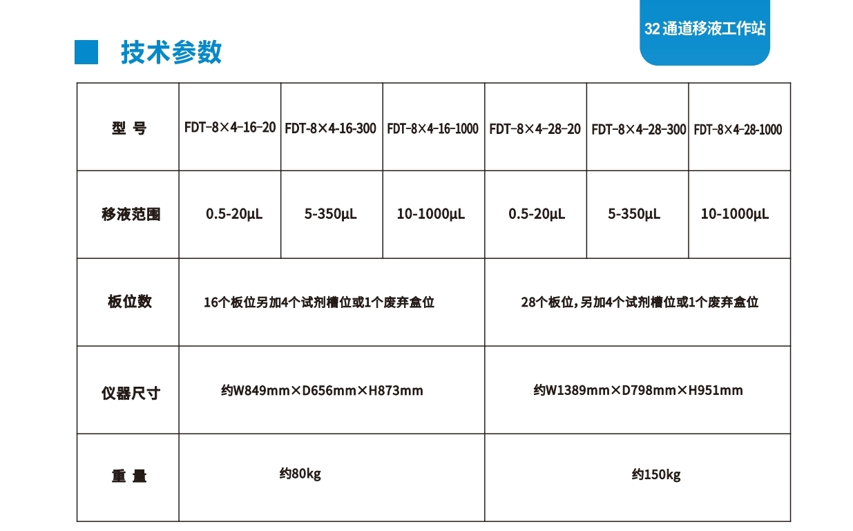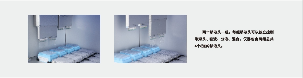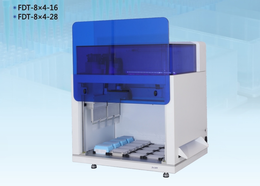 四個8通道移液頭的多功能移液工作站,擁有兩個系列產(chǎn)品:FDT-8X4-16與FDT-8x4-28,分別為16板位與28板位,每個系列有0.5-20μL、5-350μL、10-1000μL等多個量程可供選擇,可實現(xiàn)1-32通道的移液,可以自動退吸頭,比8通道的移液效率快4倍,軟件操作系統(tǒng)圖形化界面,直觀簡單,廣泛應(yīng)用于血凝實驗(HA)、血凝抑制實驗(HI)、藥物篩選與藥物敏感實驗、抗體篩選、樣本轉(zhuǎn)移、核酸純化提取、各種試劑體系配制等場合。